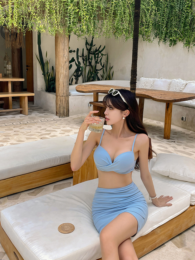 夏日漫步・雲朵抓皺半身裙泳衣套裝 | 柔霧藍色 | #660383