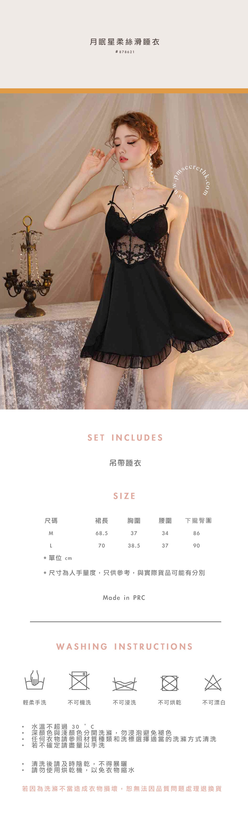 月眠星柔絲滑固定睡墊睡衣 | 黑色 | #878621