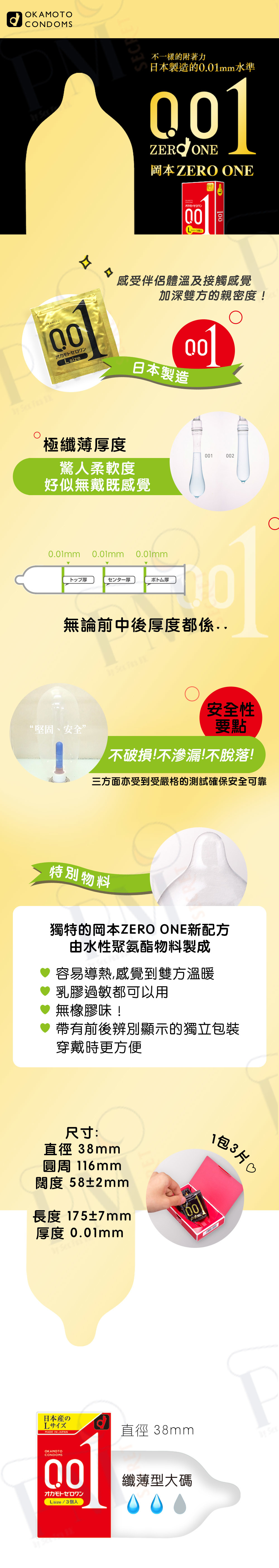 O K A M O T O・001 極薄大碼 PU 安全套 - 3 片裝