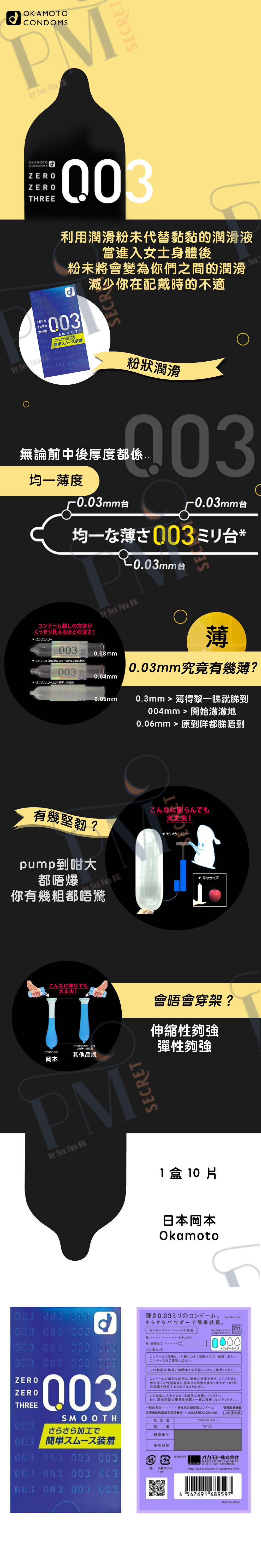 O K A M O T O・003 粉末順滑凝膠乳膠安全套 - 10 片裝