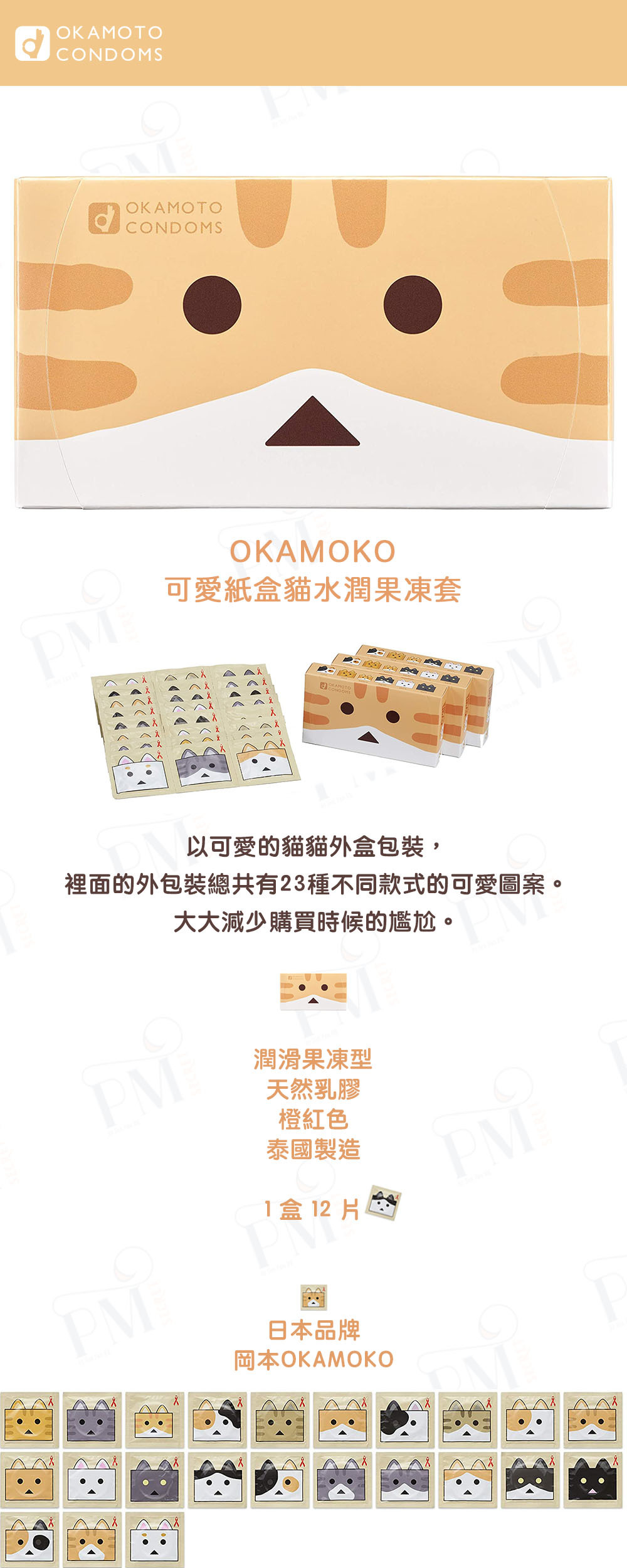 O K A M O T O・004 紙盒貓水潤果凍乳膠安全套 - 12 片裝