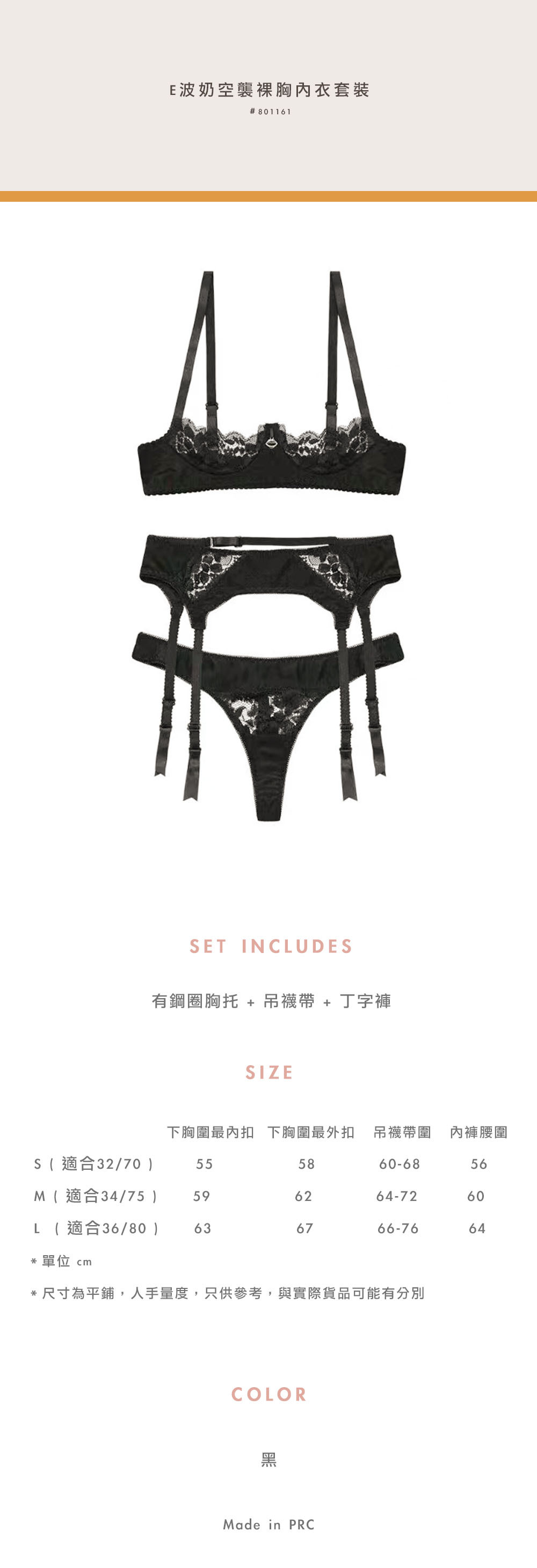 E波奶空襲裸胸內衣套裝 | 黑色 | #801161