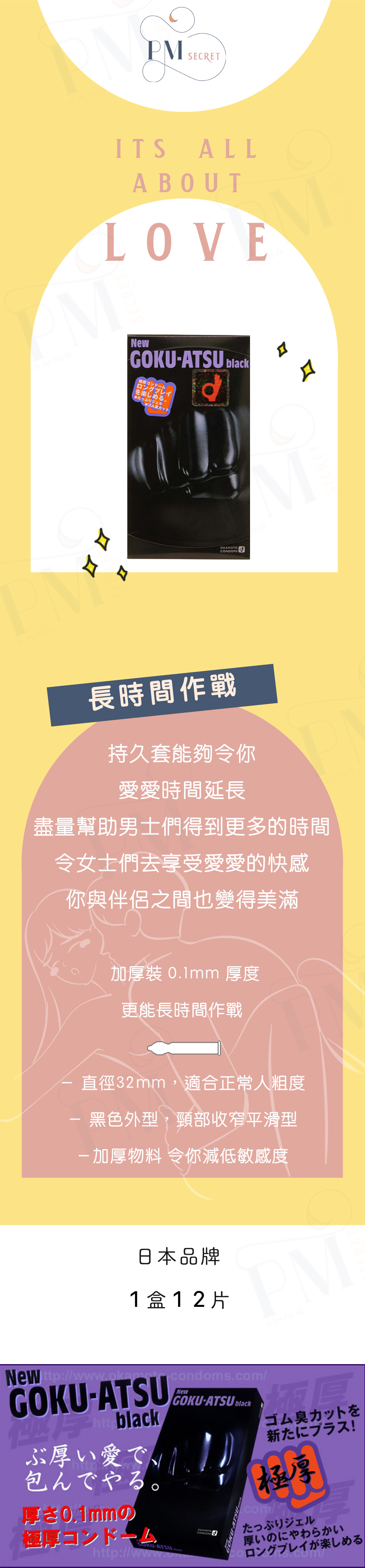 O K A M O T O・GOKU-ATSU 持久乳膠安全套 - 12 片裝