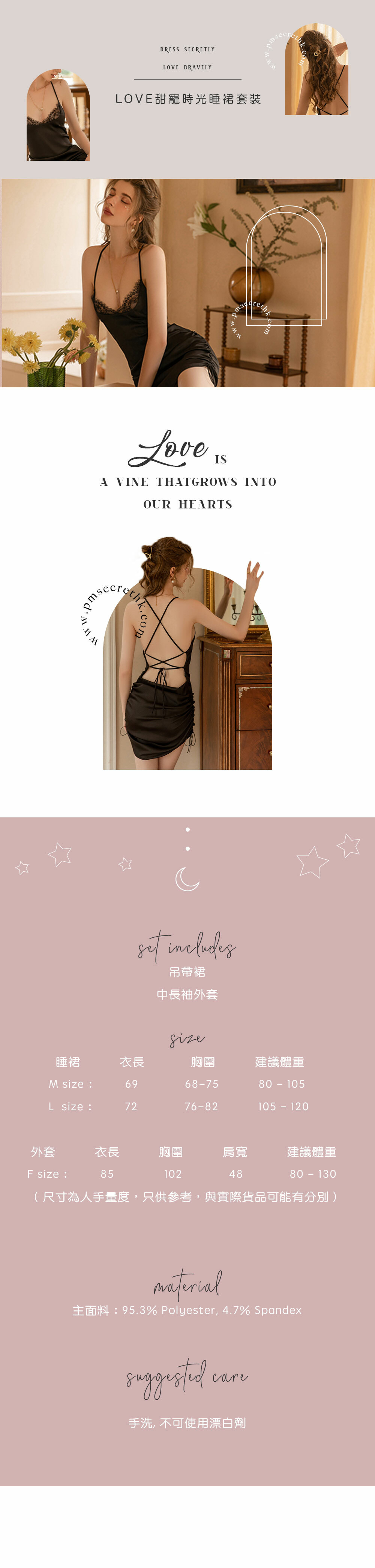 LOVE甜寵時光睡裙套裝 | 黑色 | #100641