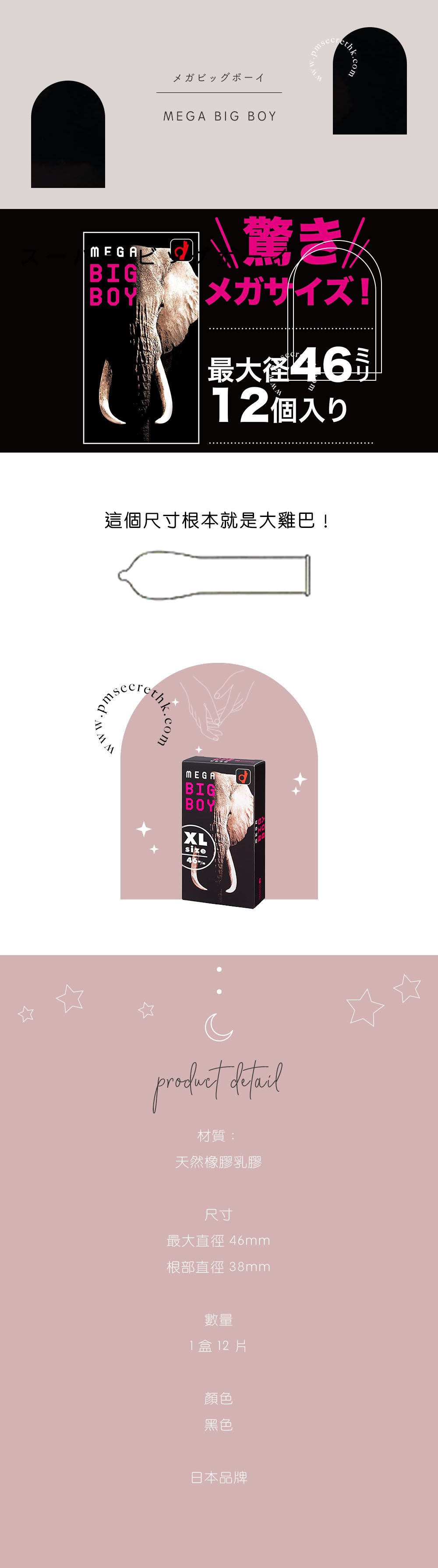 O K A M O T O・MEGA BIG BOY 大碼乳膠安全套 [ 直徑 46mm ] - 12 片裝