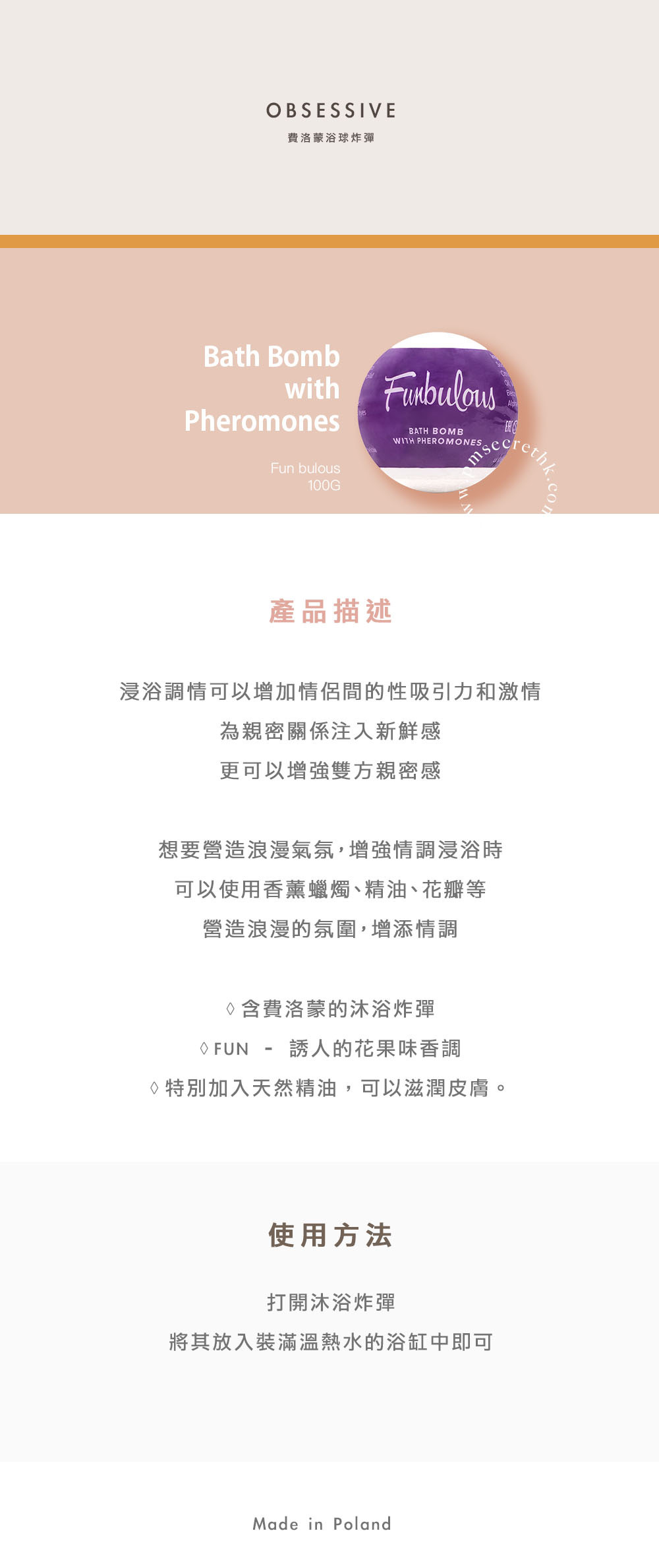 含費洛蒙成份的泡泡浴球不單令你能在浴缸中放鬆心情,令身體散發出清香好聞的香氣,更重要是其中的費洛蒙成份,令你全身都散發出誘人性感的獨特吸引力。