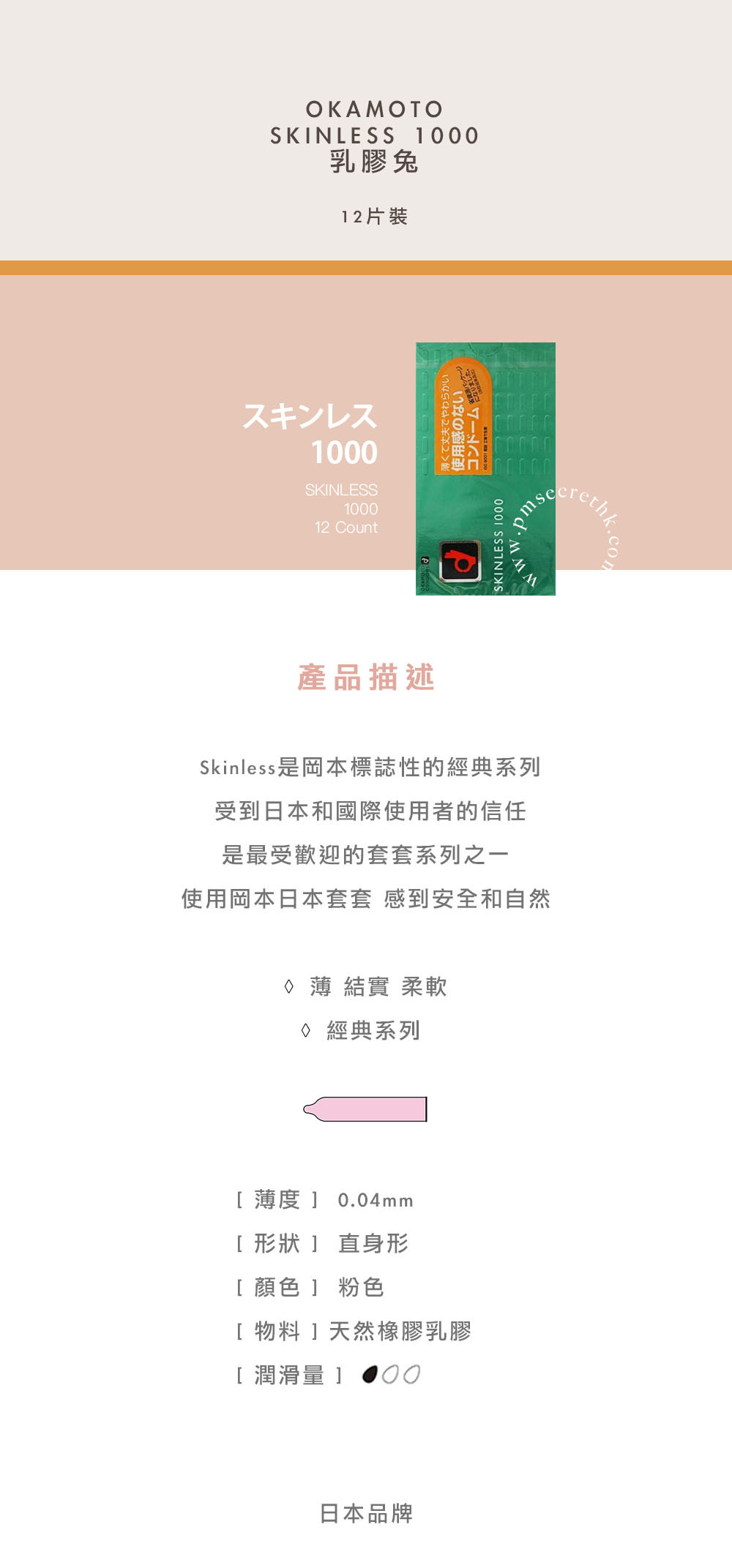 O K A M O T O・SKINLESS 1000 乳膠安全套 - 12 片裝