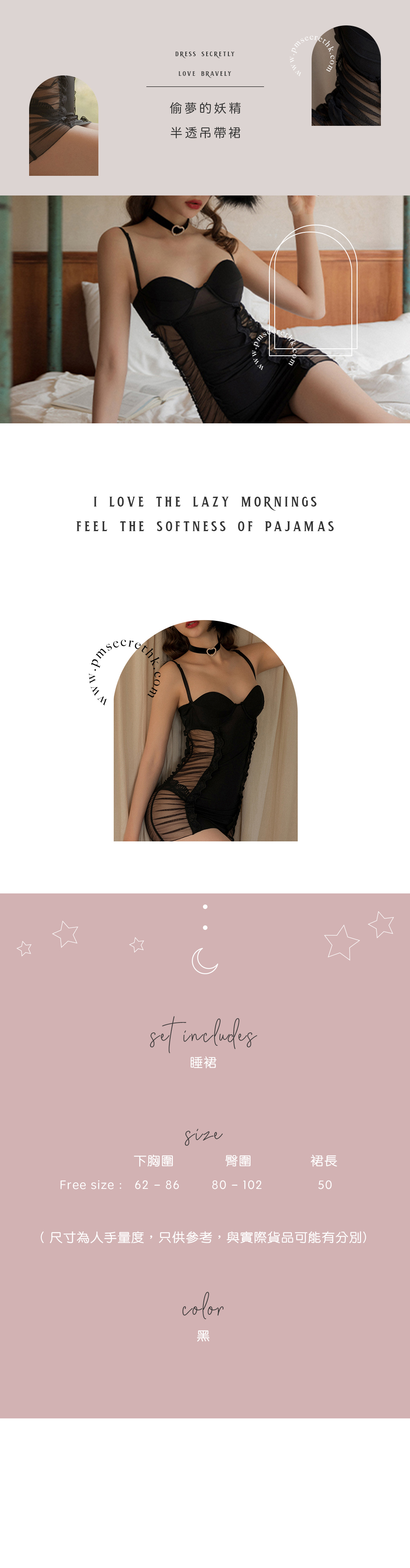 偷夢的妖精半透吊帶裙 | 黑色 | #865531