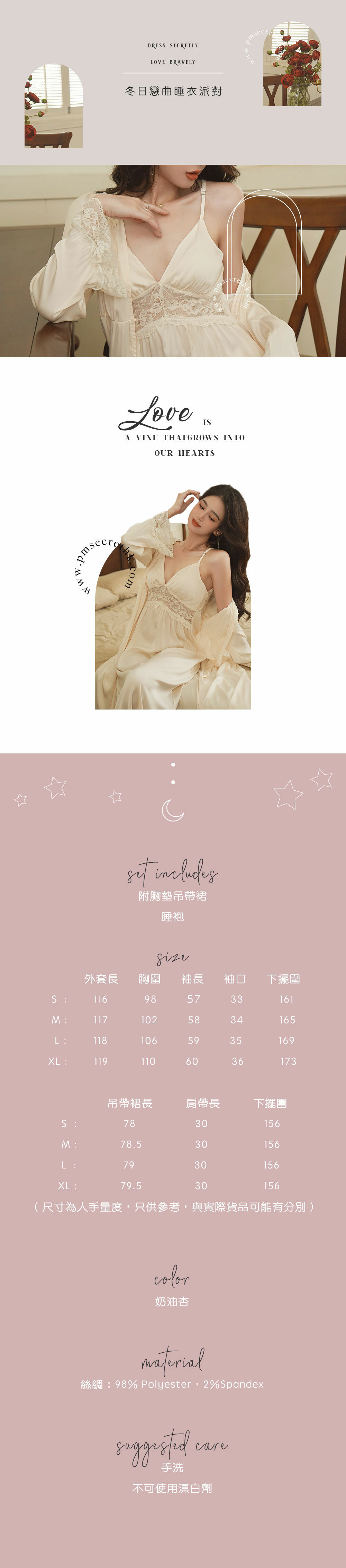 冬日戀曲睡衣派對連胸墊睡衣睡袍套裝 | 杏色 | #100220