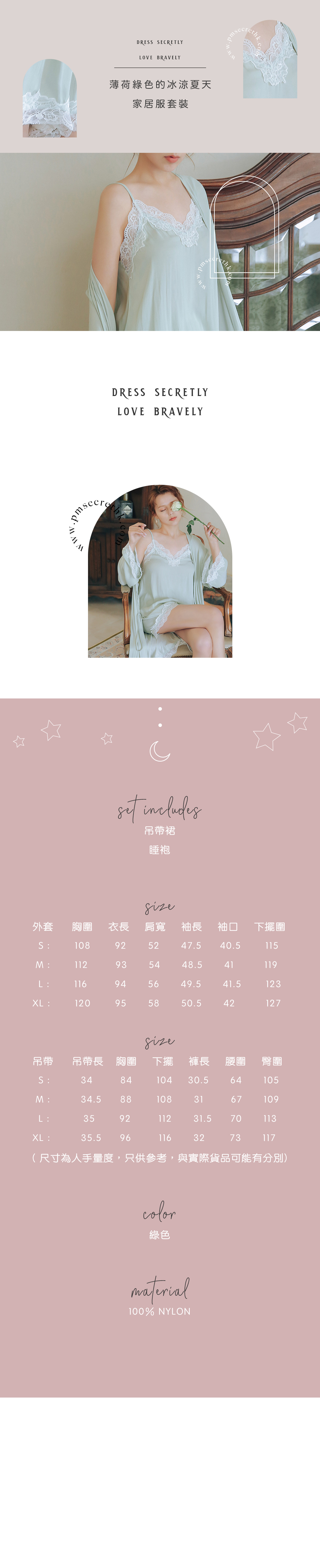 冰涼夏天家居服睡衣睡袍3件套裝 | 綠色 | #105681