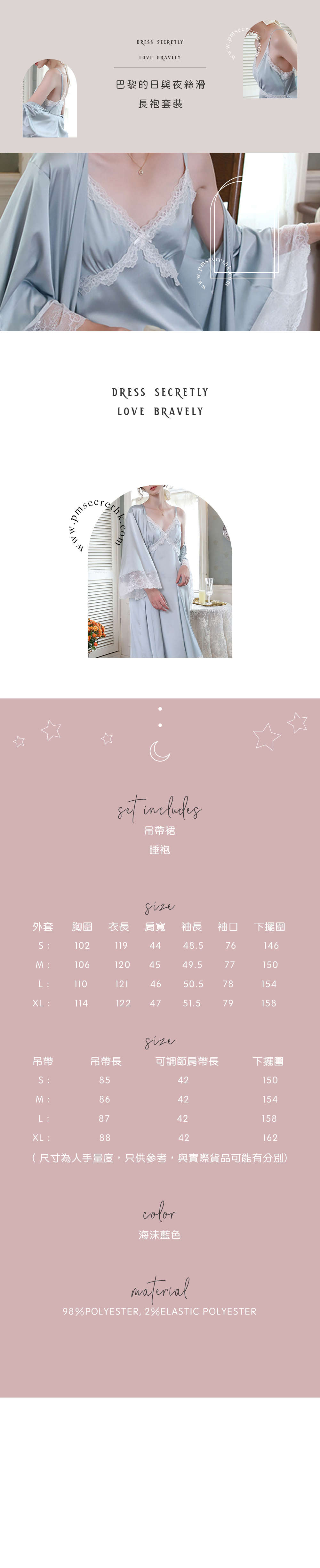 巴黎的日與夜絲滑睡衣睡袍套裝 |藍色 | #100891