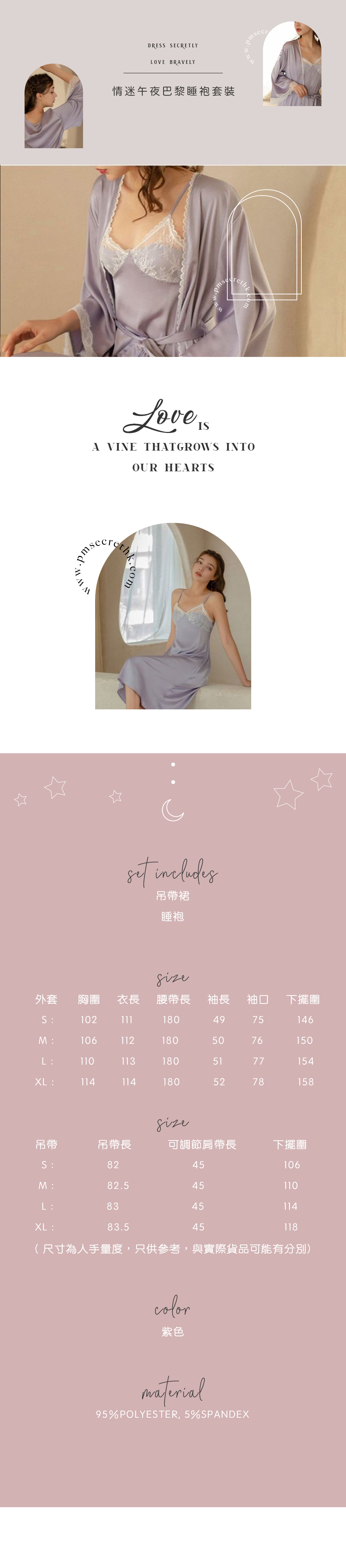 情迷午夜巴黎睡衣睡袍套裝 | 紫色 | #100831