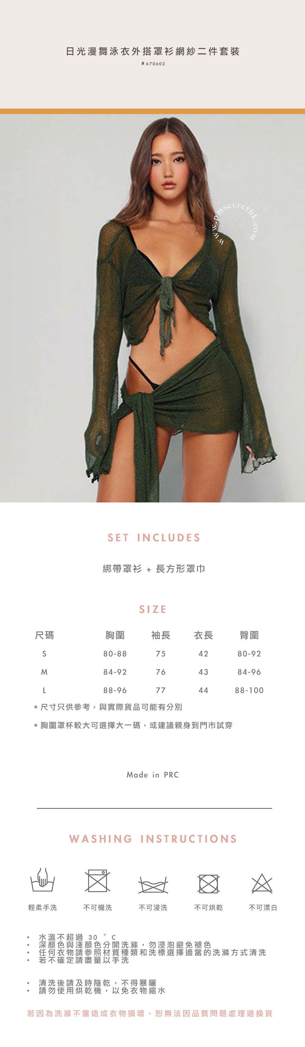 日光漫舞泳衣外搭罩衫網紗二件套裝 | 綠色 | #670602