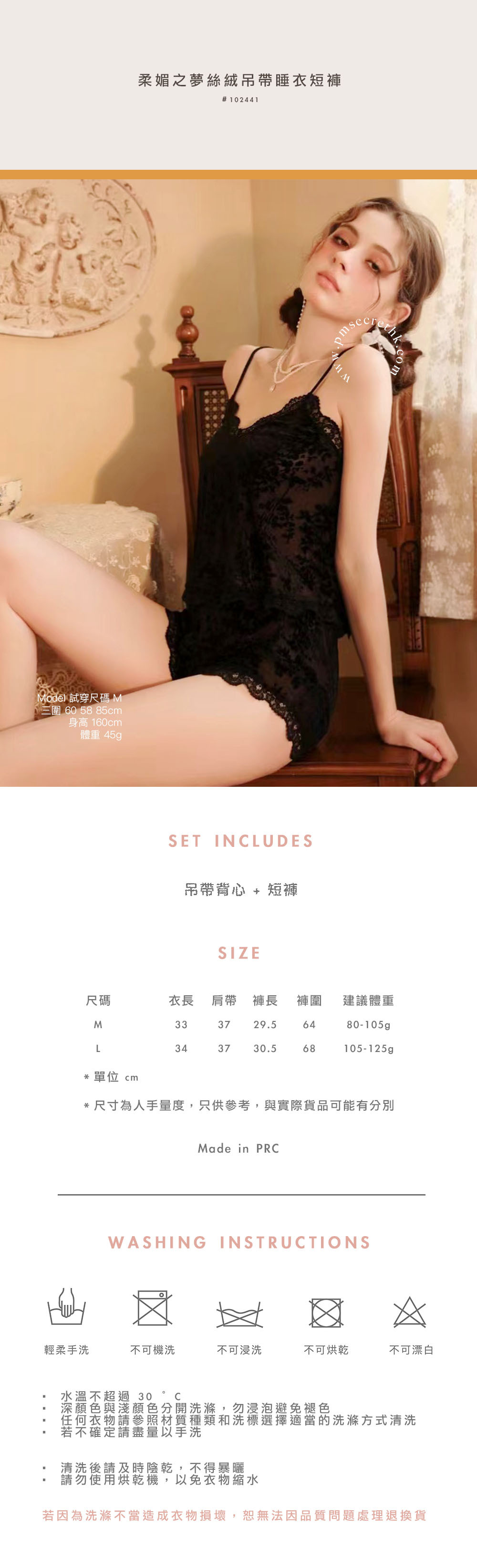 專為亞洲女生設計的剪裁,打造慵懶性感的睡前儀式感。質感極致柔滑,交織性感與甜美的夢幻睡衣套裝。細肩帶搭配立體絲絨印花,光影下呈現高級立體感,勾勒迷人鎖骨線條,背心的飄逸感與貼身短褲完美融合,帶來慵懶優雅的氛圍。無論是粉色的溫柔夢幻,還是黑色的極致誘惑,都是每晚最溫柔的寵愛。