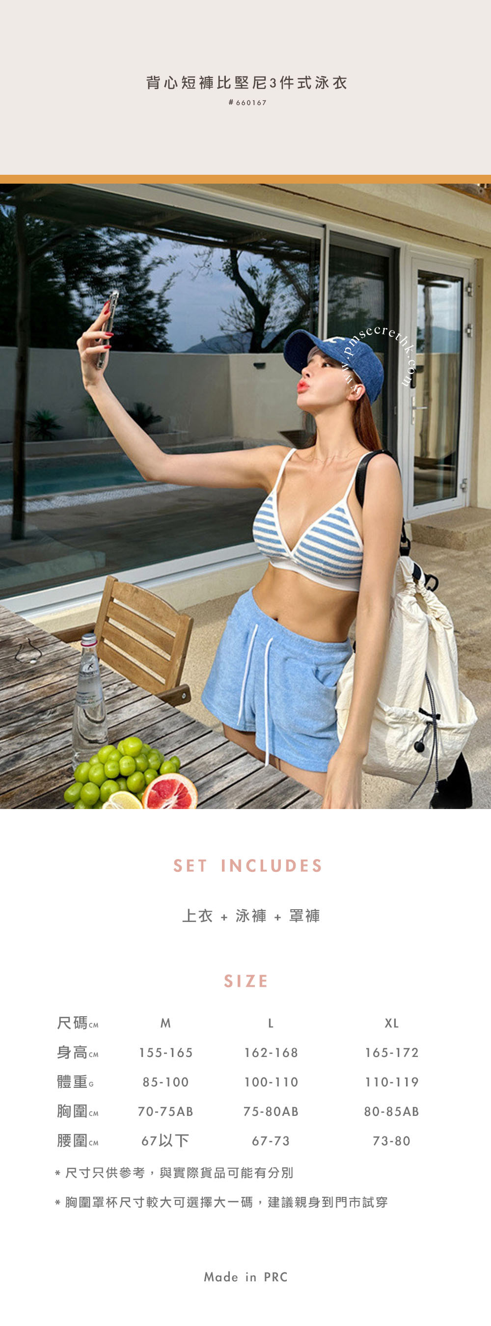 背心短褲比堅尼3件式泳衣 | 藍色 | #660167
