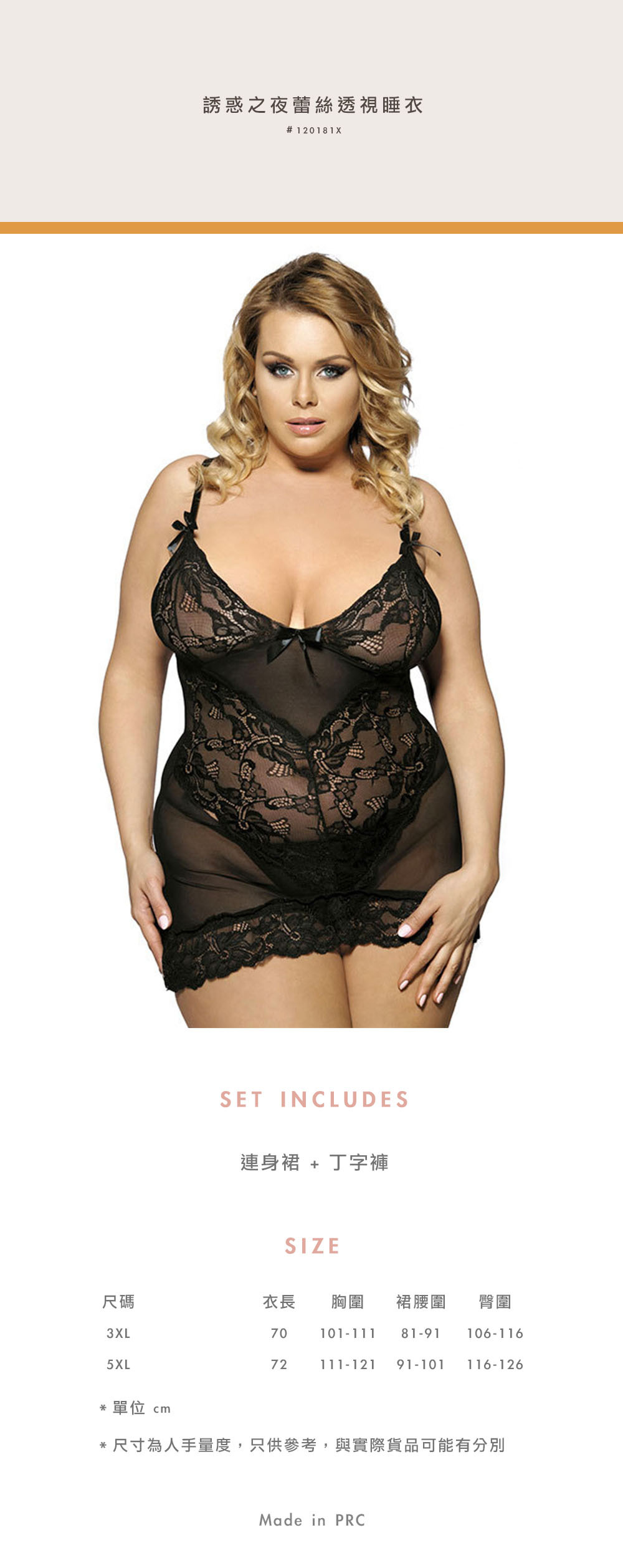 誘惑之夜蕾絲透視睡衣 | 黑色 | #120181X