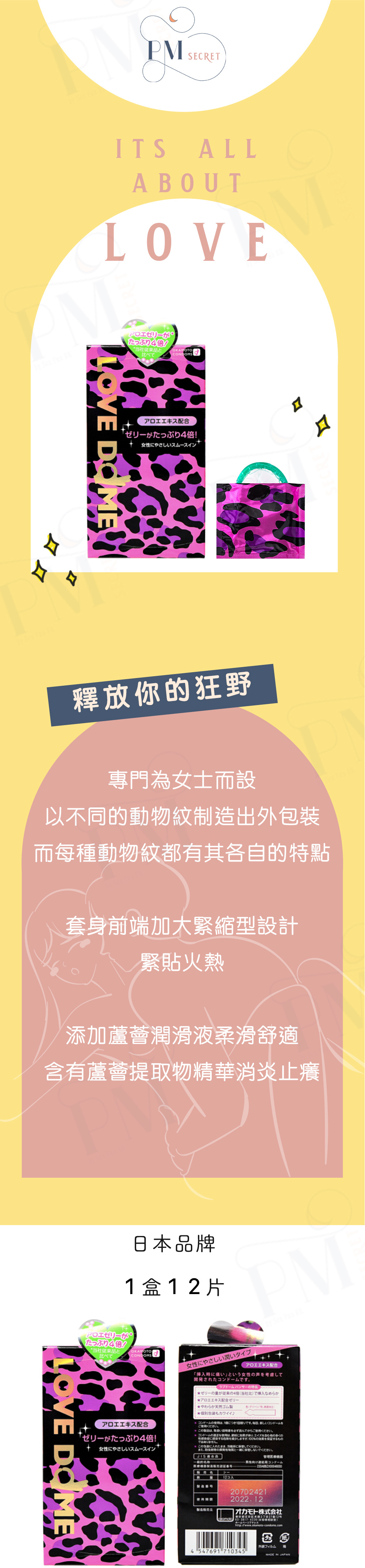 O K A M O T O・豹紋LOVE DOME釋放你的狂野乳膠安全套 - 12 片裝