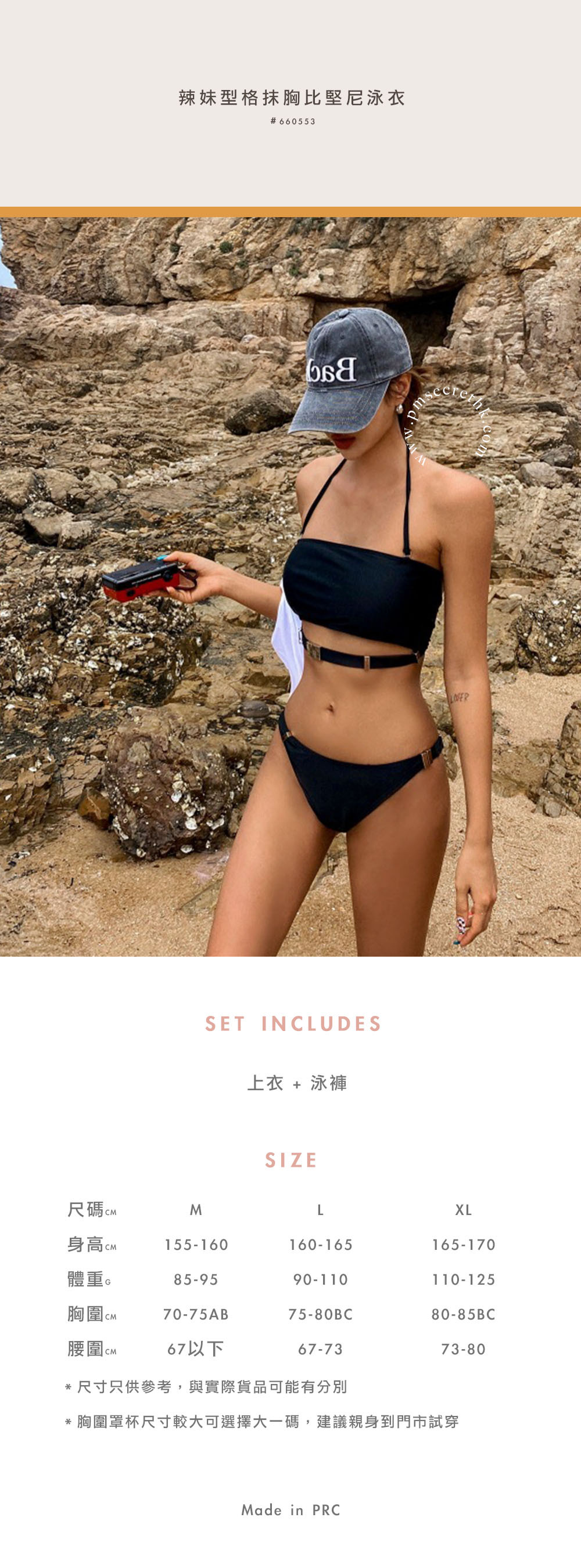 5 折‼️【 斷碼清倉 𝘴𝘪𝘻𝘦 XL 】辣妹型格抹胸比堅尼泳衣 | 黑色 | #660553