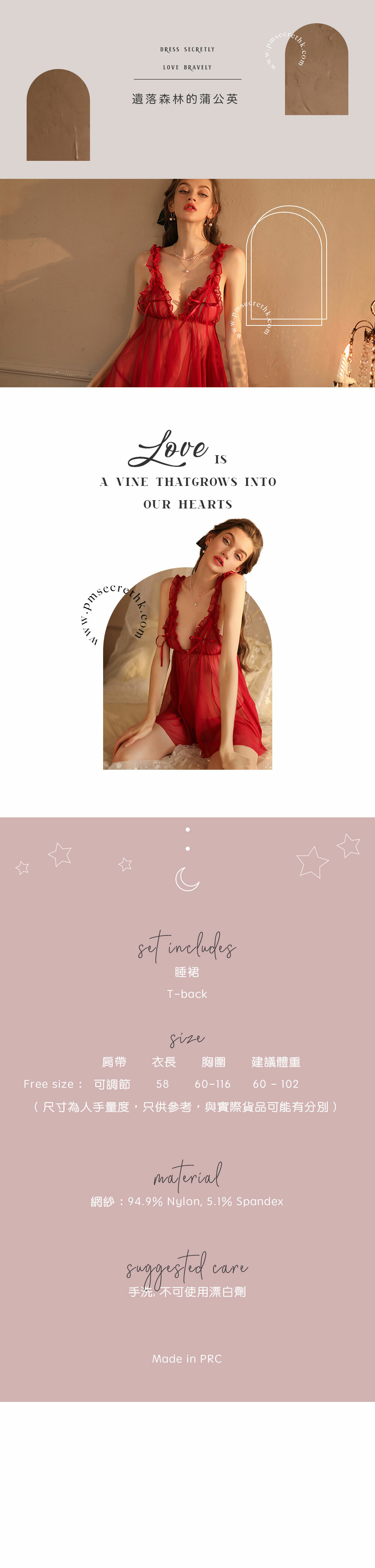 遺落森林的蒲公英前開式睡衣 | 紅色 | #883301