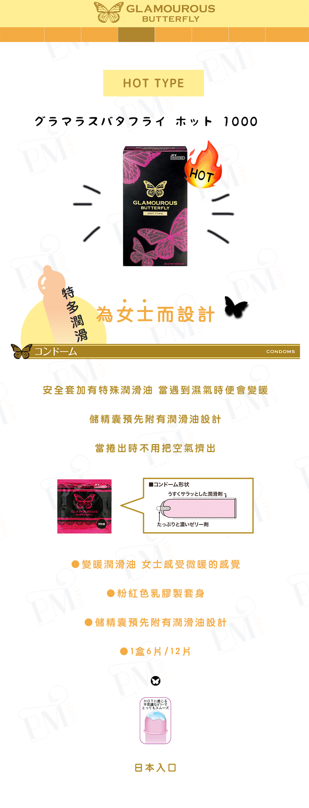 J E X・魅力蝴蝶HOT TYPE水潤果凍乳膠安全套 - 6 / 12 片裝